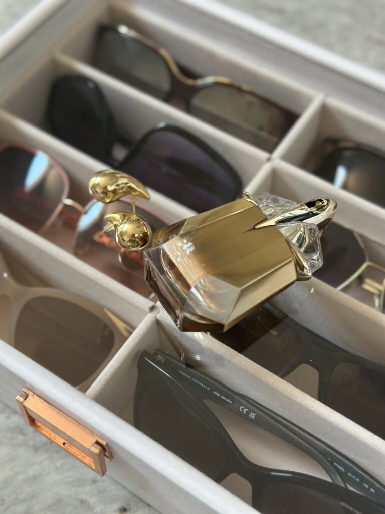 - Sunglasses Organizer Box – Perfect for keeping all your shades in one place, dust-free and ready to go. It looks luxe and makes getting ready quicker.